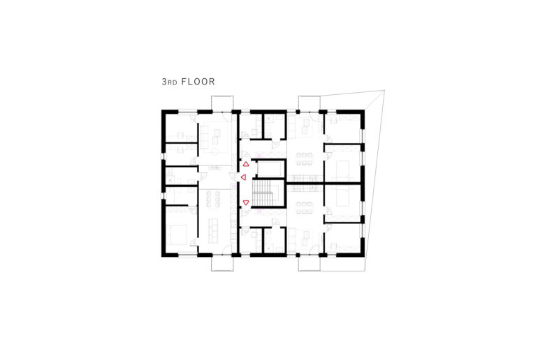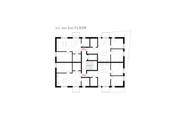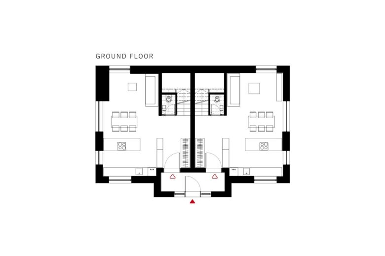 The project includes two different typologies that offer various living options. It consists of two pairs of two-dwelling building with small gardens, and a residental building with assisted living apartments. The entire project creates a new street frontage and connects into a cohesive whole through the selection of uniform materials.