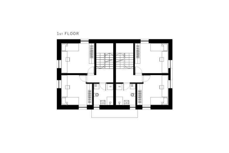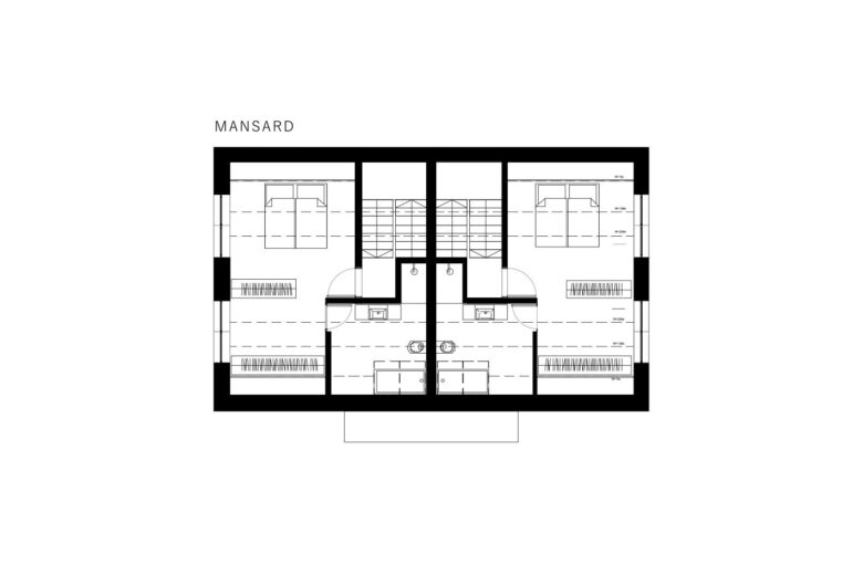 The façade systems consist of white rough plaster complemented by elegant gray joints and large-format panels in amber red-brown hues. These visual highlights on the façades create a warm and modern appearance while enhancing the durability of the façades. On the two-dwelling buildings, the colored panels indicate the functional separation of the building into living and sleeping areas. On residental building, the panels are used to emphasize the balconies and eaves, marking the division between the exterior and interior spaces. As the panels are used for balcony railings, they provide privacy for residents and reduce overheating.